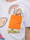 A estampa exclusiva traz Dino em destaque e um bolso falso supercriativo com o personagem Barney e seu famoso dino-costeleta.