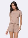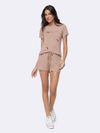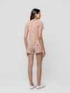 O short com cós ajustável complementa a peça com liberdade e praticidade. Ideal para noites de descanso com suavidade e estilo.