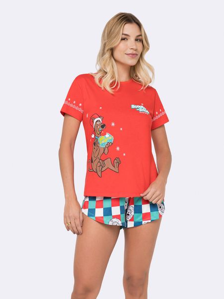 Pijama Manga Curta Feminino Curto Scooby-Doo Natal